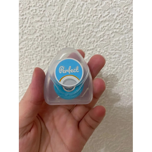Удобный футляр,а так же система отреза нити.Сама нить крепкая,не рвется,удобно очищать зубы от остатков пищи.Аромат кокоса очень приятный и оставляет приятное послевкусие